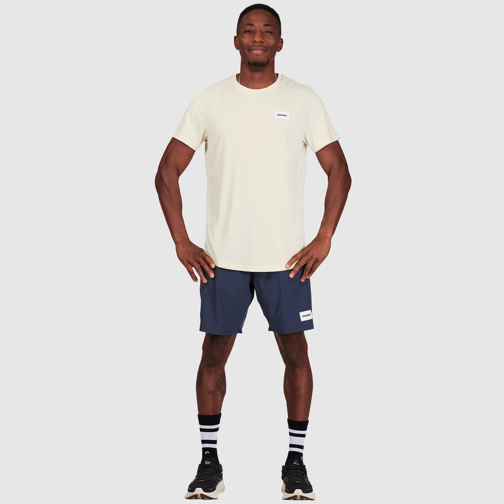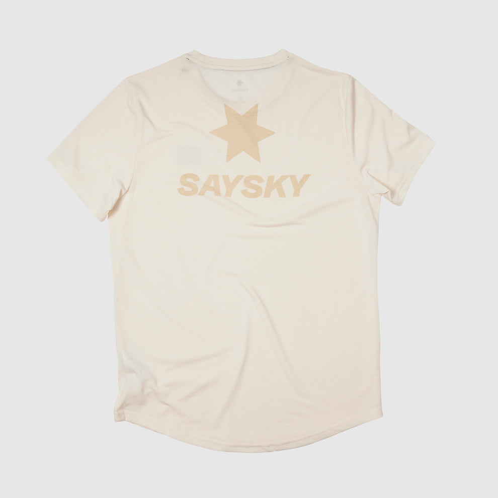 La camiseta SAYSKY Logo Motion es una camiseta de manga corta de nuestra serie Motion. Viene en color blanco y cuenta con un logotipo de SAYSKY tejido en la parte delantera y uno clásico en la parte posterior. Está hecho en Tencel suave mezclado con poliéster, lo que resulta en un producto de rendimiento muy cómodo. La camiseta tiene un ajuste casual y una sensación ligera, que es perfecta para los entrenamientos, correr y el uso diario.