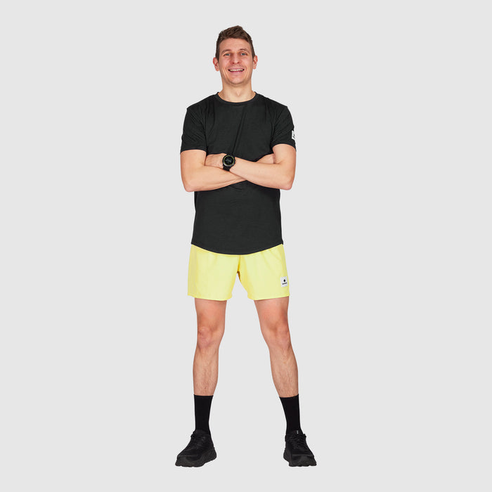 La camiseta SAYSKY Clean Pace es una camiseta masculina de manga corta para correr en negro hecha de poliéster reciclado. Viene con un diseño limpio y elegante y una etiqueta SAYSKY tejida en la parte posterior y el brazo en blanco. El ajuste es regular, con un tejido súper suave y una gran capacidad de absorción de la humedad.