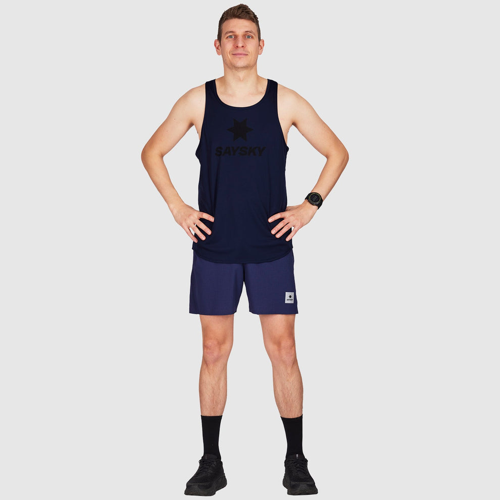 El singlete de flujo de logotipo de SAYSKY es para la persona que solo pide lo mejor de lo mejor. Tiene un ajuste de carrera con la espalda de corredor y viene en un diseño azul simple con un logotipo de SAYSKY negro en la parte delantera y una etiqueta SAYSKY tejida blanca en la parte posterior. Está hecho de poliéster reciclado al 79 %, un material ligero de alto rendimiento que proporciona una sensación cercana a la piel, ventilación y tiempos de secado rápido.