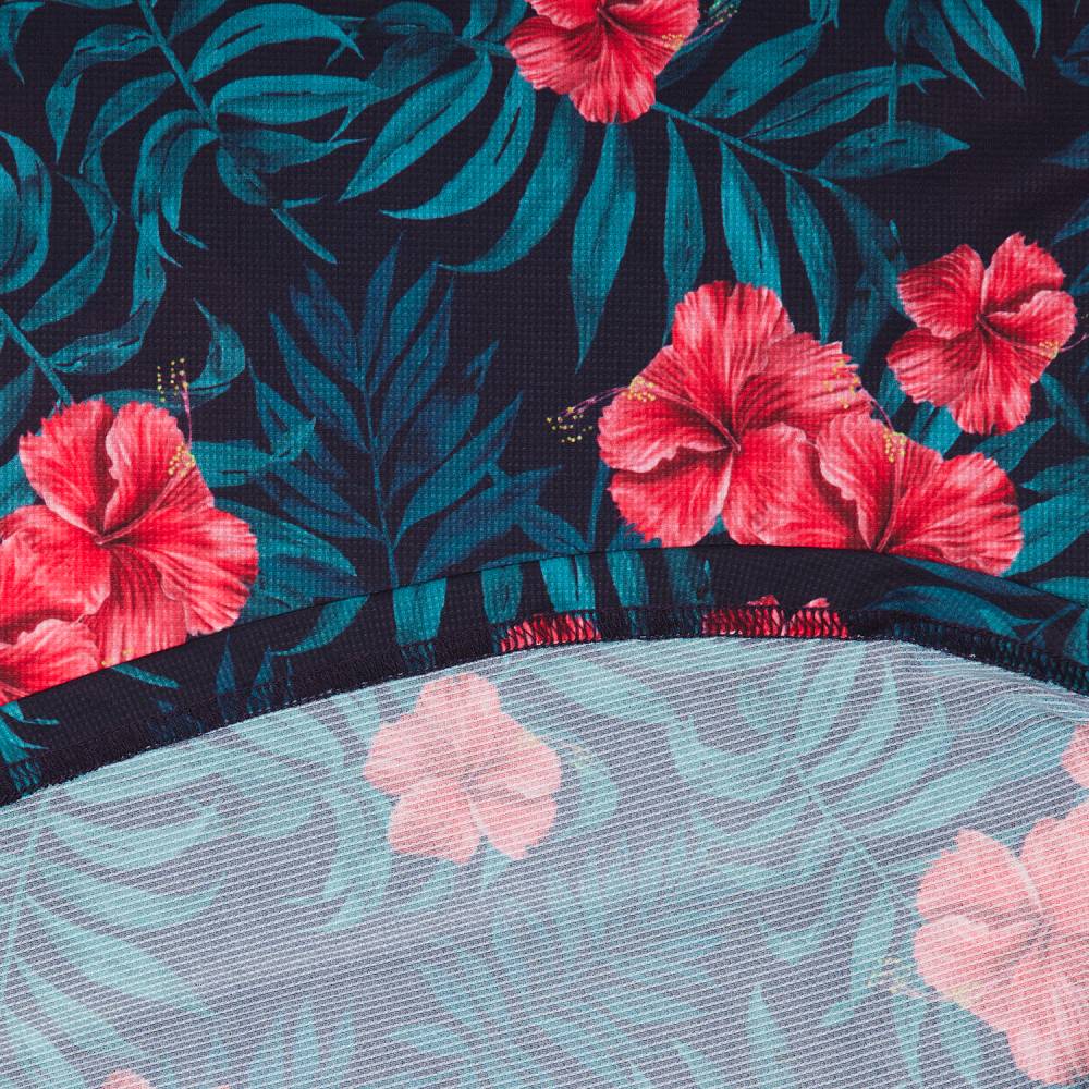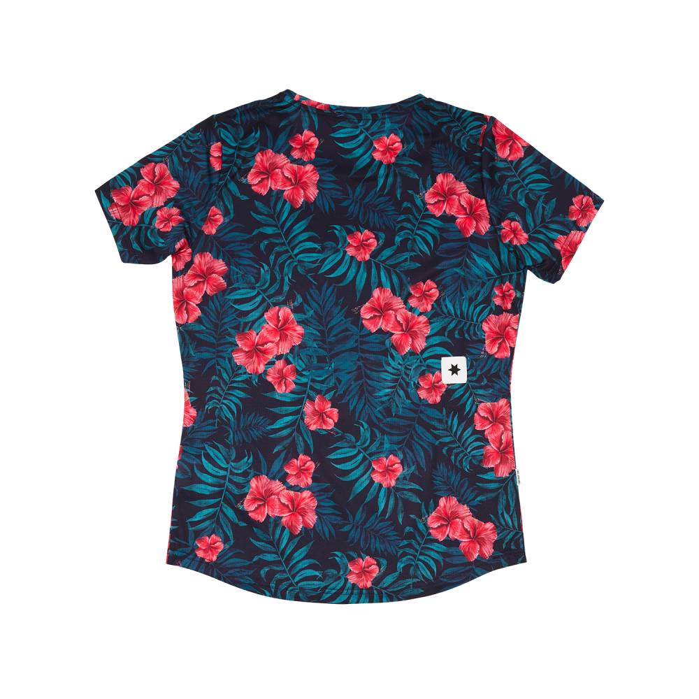 La camiseta SAYSKY Flower Combat tiene un ajuste normal para hombre. Viene en el estampado de flores de hibisco en flor con un logotipo blanco de SAYSKY en el pecho. La camiseta absorbe la humedad y se seca rápidamente, lo que garantiza una alta transpirabilidad y un mayor flujo de aire. La construcción técnica reduce la capacidad de la tela para aferrarse a la piel. Está hecho de poliéster reciclado, que es un peso ligero de alto rendimiento que ofrece una gran flexibilidad.